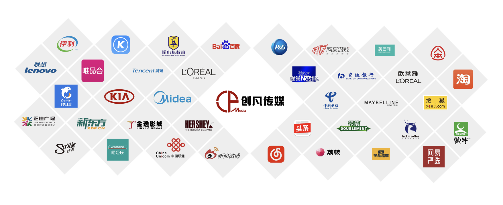 公司以“做品牌年輕化的好幫手”為使命,憑借敏銳的創意洞察、卓越的營銷策劃能力、豐富的活動經驗和全方位的媒體資源,為企業提供高效、精準的一站式營銷推廣服務。已成為寶潔、騰訊、京東、中國聯通、字節(jié)跳動等世界500強品牌庫內供應商。